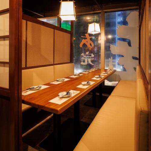 広々としたお席はゆったりとくつろげることが可能です。全席が完全個室でございますので、お客様だけのプライベートなお時間をお過ごしいただけます。